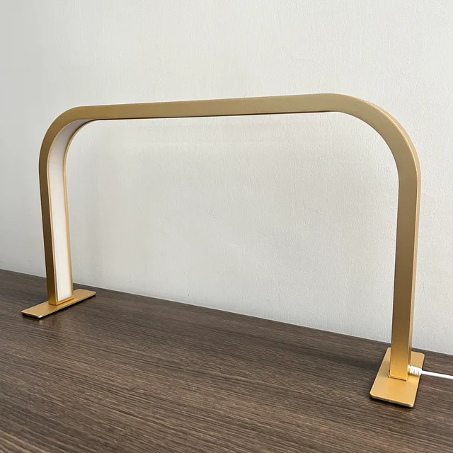 Настольная лампа-полумесяц подходит для рабочего места мастера маникюра, съёмки контента и равномерного освещения стола. Размер лампы составляет 60 × 33 см, а мощность 36 Вт делает её удобным вариантом для салона, домашнего кабинета и зоны съёмки.