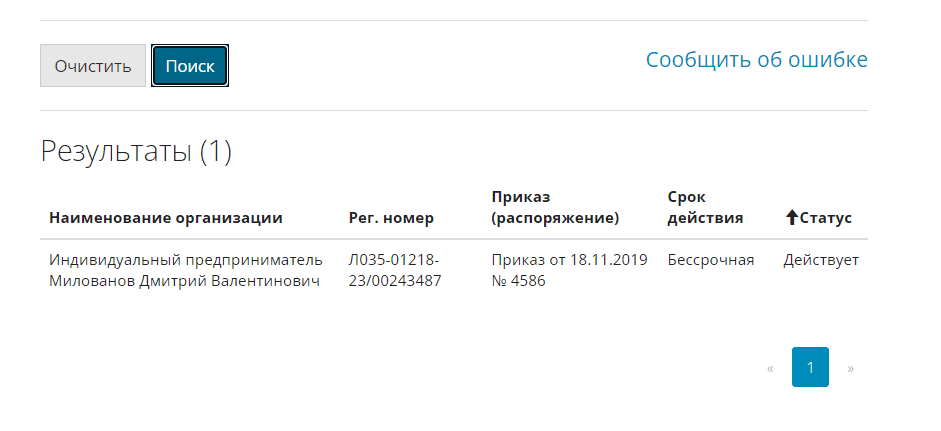 Далее необходимо нажать “ПОИСК” (синяя кнопка внизу формы) и дождаться результата.