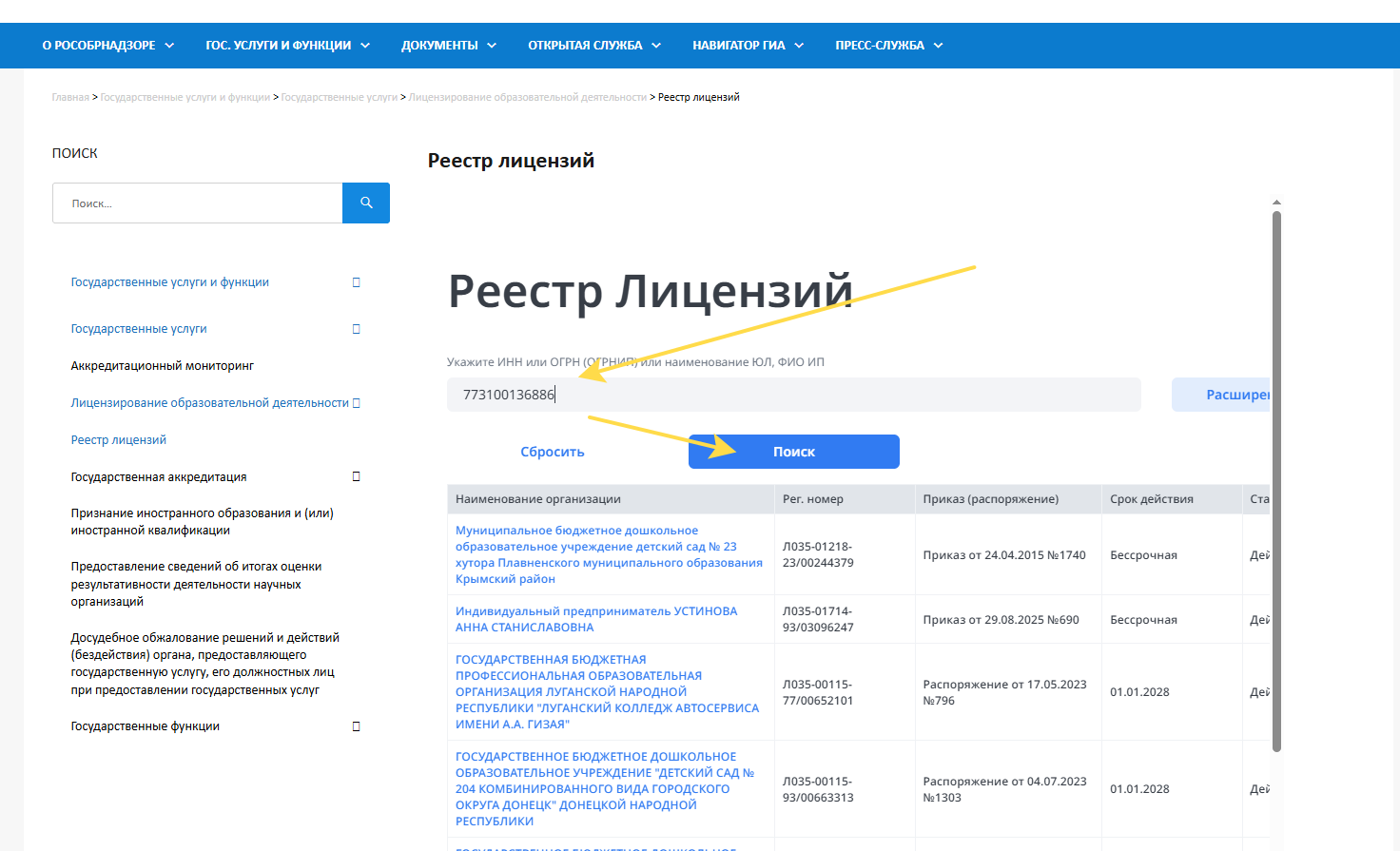 Аналогичным способом можно проверить любую образовательную организацию России.